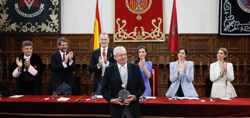 La ceremonia tuvo lugar en el Paraninfo de la Universidad de Alcalá de Henares, donde se reconoció al mexicano como “un escritor integral: creador, maestro y lector apasionado”.