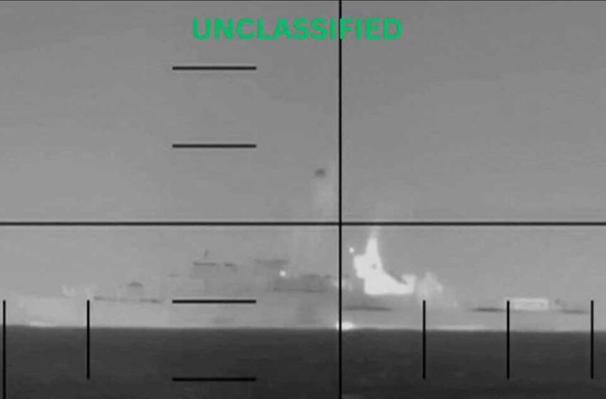 El barco en cuestión fue «alcanzado por un misil en el norte del Golfo Pérsico». Actualmente está en llamas», anunciaron en un comunicado leído en la televisión estatal.