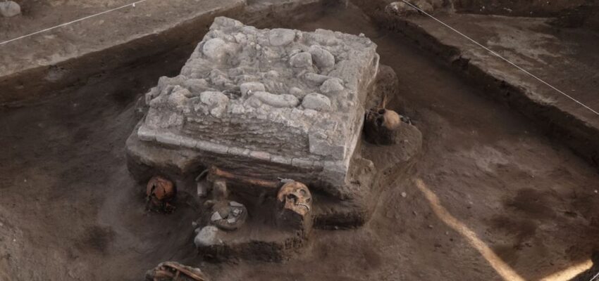 El INAH descubre altar y ofrendas a las afueras de la Zona Arqueológica de Tula, en Hidalgo. Foto: Gerardo Peña, INAH.