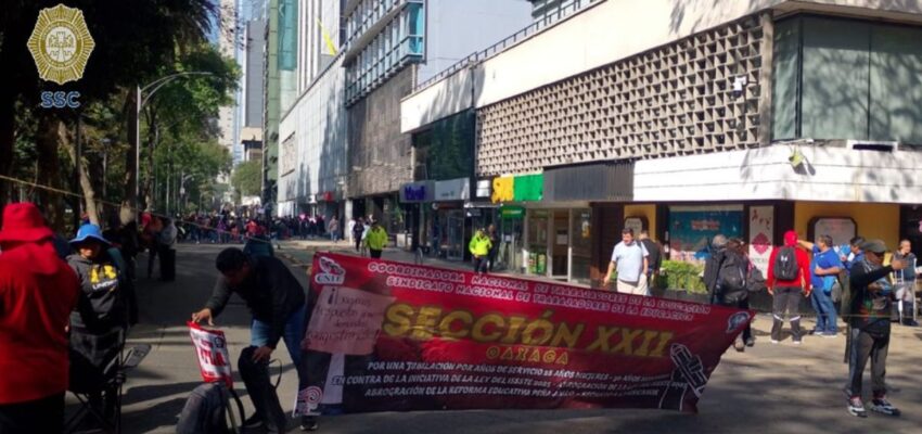 Paro de la CNTE: Cerrada la circulación sobre lateral de Av. Paseo de la Reforma. Foto: @OVIALCDMX