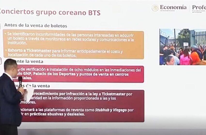 La Procuraduría Federal del Consumidor (Profeco) iniciará un procedimiento por infracción a la Ley Federal de Protección al Consumidor (LFPC) contra Ticketmaster. Esto, debido a la falta de claridad en la información proporcionada a las personas interesadas en comprar boletos para los conciertos que dará en México el grupo surcoreano BTS.