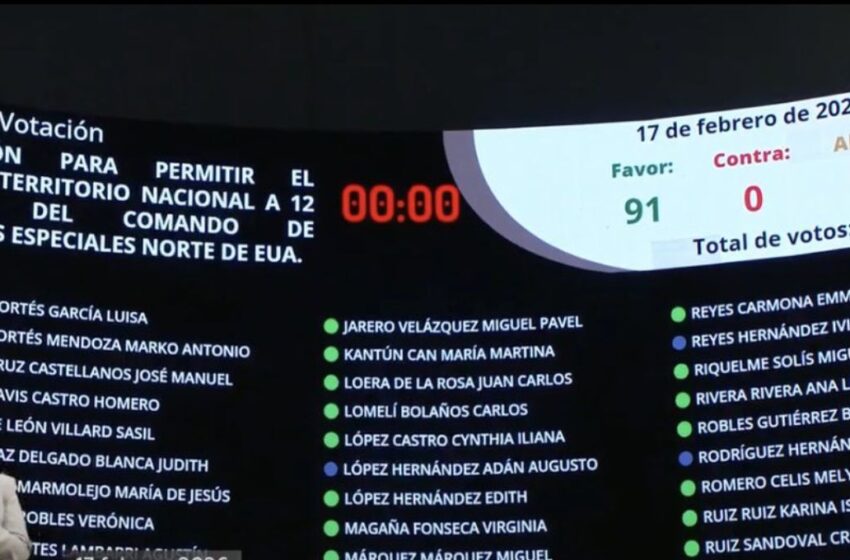 Con 91 votos a favor y 6 abstenciones, concedió la autorización para el ingreso a México de 12 elementos pertenecientes al Séptimo Grupo del Comando de Operaciones Especiales Norte de los Estados Unidos.